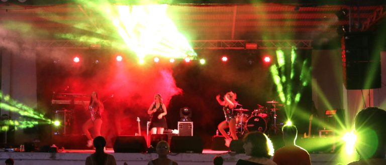na sua festa a cantora apresenta-se com suas bailarinas que ajudam à festa participando com diversão e sensualidade.